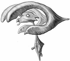 Cornu occipitale s. posterius je vrlo varijabilne veličine i oblika, a ponekad uopšte i ne postoji. Njegov dorzomedijalni zid gradi najveći dio vlakana forceps majora, a dorzolateralni zid formiraju vlakna tapetuma i dublje od njih radiatio optica. Na ventromedijalnom zidu potiljačnog roga nalazi se ispupčenje (calcar avis) prouzrokovano sulcus calcarinusom. Potiljačni rog ne sadrži plexus choroideus.