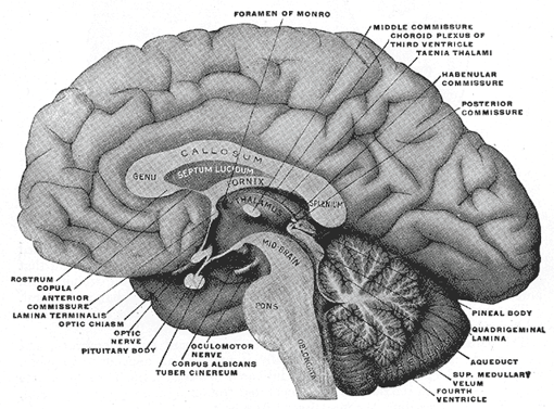 Pars centralis se pruža iza foramen interventriculare. Na njemu opisujemo donji zid ili pod, gornji zid ili krov, te medijalni zid. Donji zid središnjeg dijela bočne moždane komore grade nc. caudatus (od kojeg se prema medijalno nalazi stria terminalis), te manji dio dorzalne strane thalamusa. Gornji zid ili krov središnjeg dijela formira donja strana truncusa corporis callosi. Medijalni zid partis centralis sužava se idući prema natrag. Formiraju ga corpus fornicis, fissura choroidea i manji ili veći dio septum pelluciduma. Atrium predstavlja kaudalno proširenje lateralne moždane komore gdje se sustiču središnji dio, stražnji i donji rog. Nalazi se u blizini spleniuma corporis callosi.