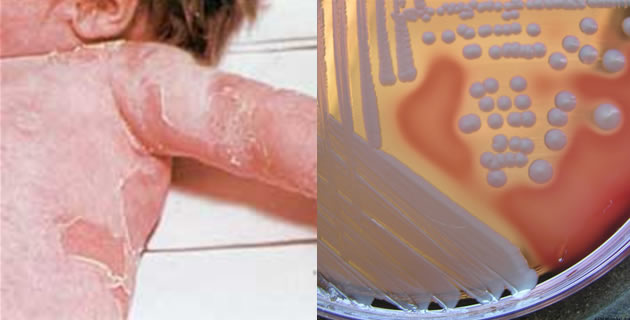 Izaziva ga Staphylococcus aureus, a javlja se kod djece do 3 mjeseca života. Uzročnik se širi iz žarišta u oku, ždrijelu, nosu, uhu ili iz vaginalne sluznice.