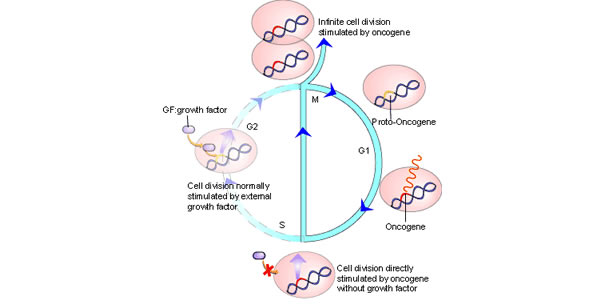 DNA spontano nastalih tumora sadrži nizove slične virusnim onkogenima. Ove sekvence DNA koje su sposobne da izazovu malignu transformaciju ćelije zovu se celularni onkogeni. Oni nastaju promijenom strukture i ekspresije normalnih ćelijskih gena, koji su neophodni u regulaciji vitalnih bioloških procesa ćelije, prije svega ćelijske diobe i diferencijacije i nazivaju celularni protoonkogeni.