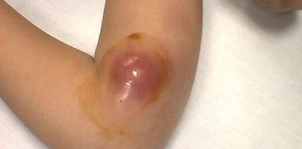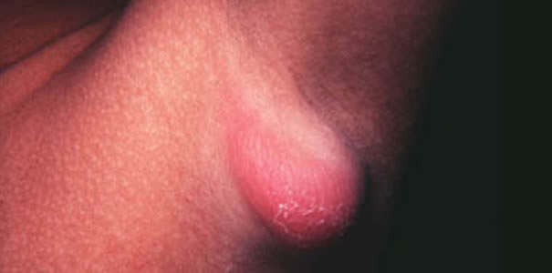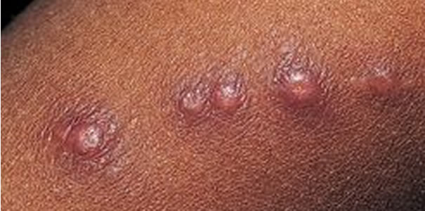 Na mjestu inokulacije (najčešće ogrebotina od mačića) uočljiva je primarna lezija, crvena mrlja (makula), kvržica (papula) ili gnojni mjehurić (pustula) veličine 2 do 5 mm, u trajanju 1 do 3 tjedna, koja prethodi povećanju susjednih limfnih čvorova (regionalnoj limfadenopatiji).